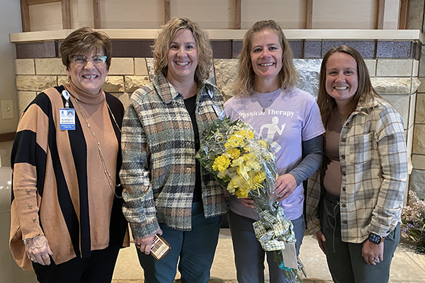Pictured left to right: Executive Vice President, COO/CNO Kathy Martinez; Director of Rehabilitation Services Jessica Currier, Physical Therapist Kim Price, and nominator Sheena Masson.