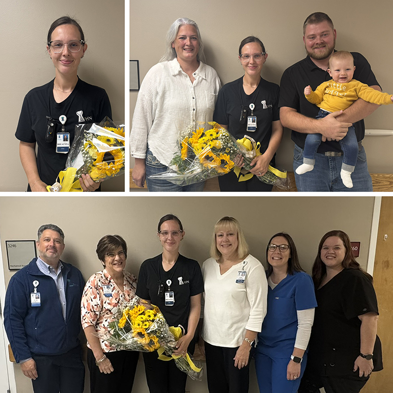 Pictured left to right: President and CEO Mark Gridley; Executive Vice President, COO/CNO Kathy Martinez; Bee Award recipient BreAunna Lundquist; Director Women’s Health and Med/Surg Linn Carter; Nursing Operations Leader Tabitha Graves; and Team Leader Ambulatory Care Brandy Quinn.