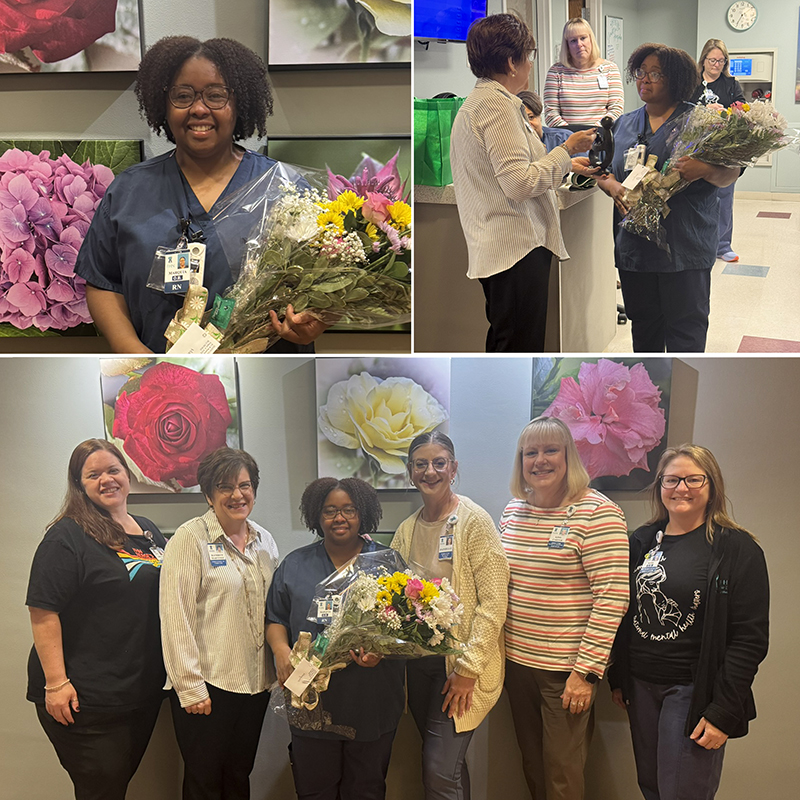 Pictured left to right: Nursing Operations Leader Tabitha Graves; Executive Vice President, COO/CNO Kathy Martinez; CNA Madison Wilson; and Nursing Operations Leader Telemetry, Breo Pierce.